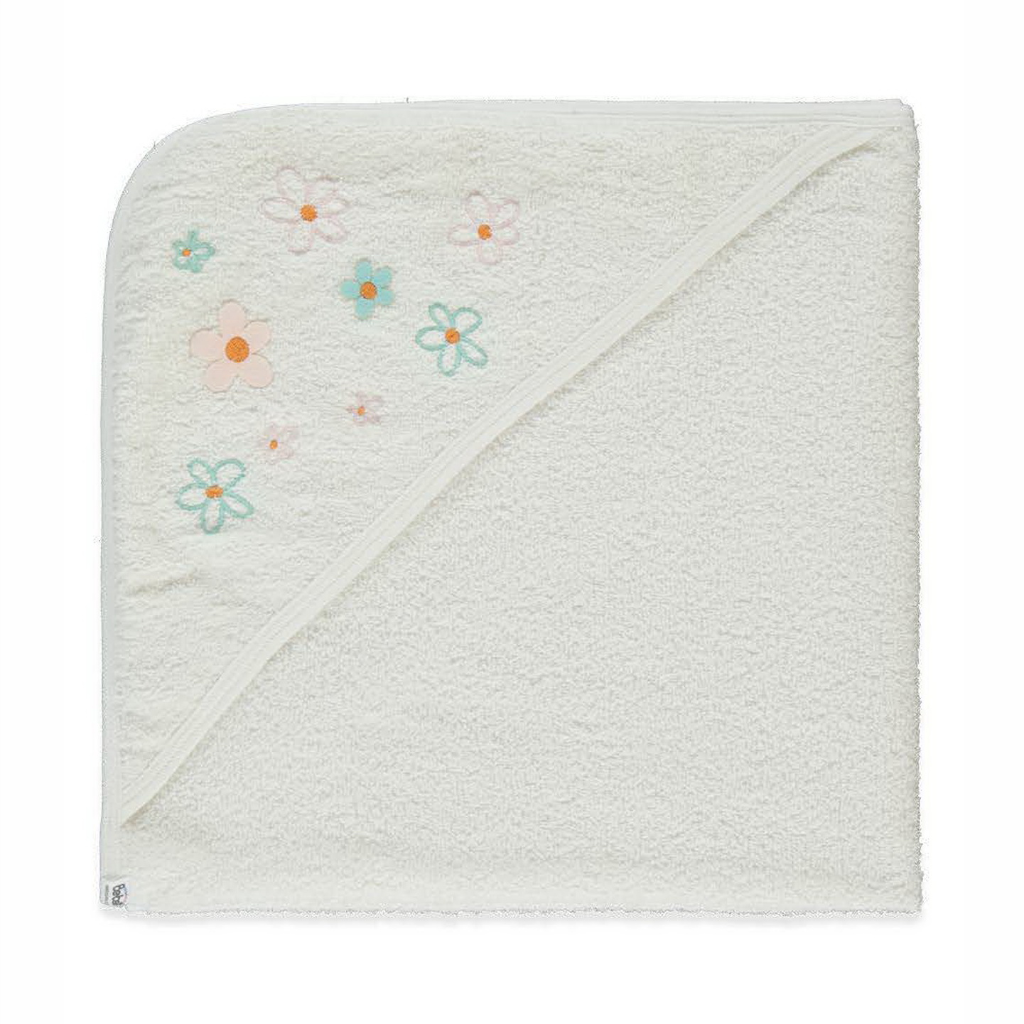 Мягкое полотенце из хлопка с капюшоном для удобства после купания. Капюшон украшен аккуратной вышивкой с цветами, что придаёт изделию нежный и уютный вид. Натуральный материал хорошо впитывает влагу и дарит комфорт нежной детской коже.