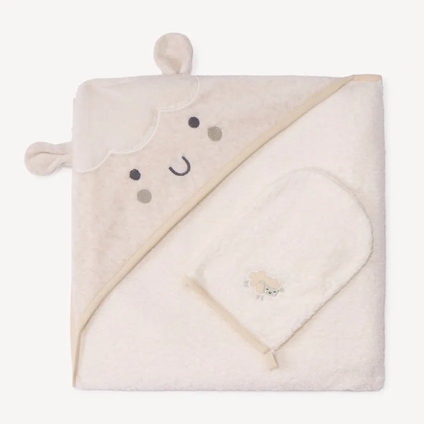 | Набор для купания малыша — мягкий, уютный и невероятно милый. В комплект входит полотенце с уголком и варежка-миттен для бережного ухода за кожей. Полотенце выполнено в нежном молочном оттенке и оформлено в виде забавной овечки с ушками — деталь, которая обязательно поднимет настроение после купания. Мягкая махровая текстура отлично впитывает влагу и деликатно согревает ребёнка, не раздражая кожу. Варежка позволяет комфортно и аккуратно намыливать малыша, превращая водные процедуры в приятный ритуал. Идеальный выбор как для дома, так и в качестве милого подарка новорождённому. |
