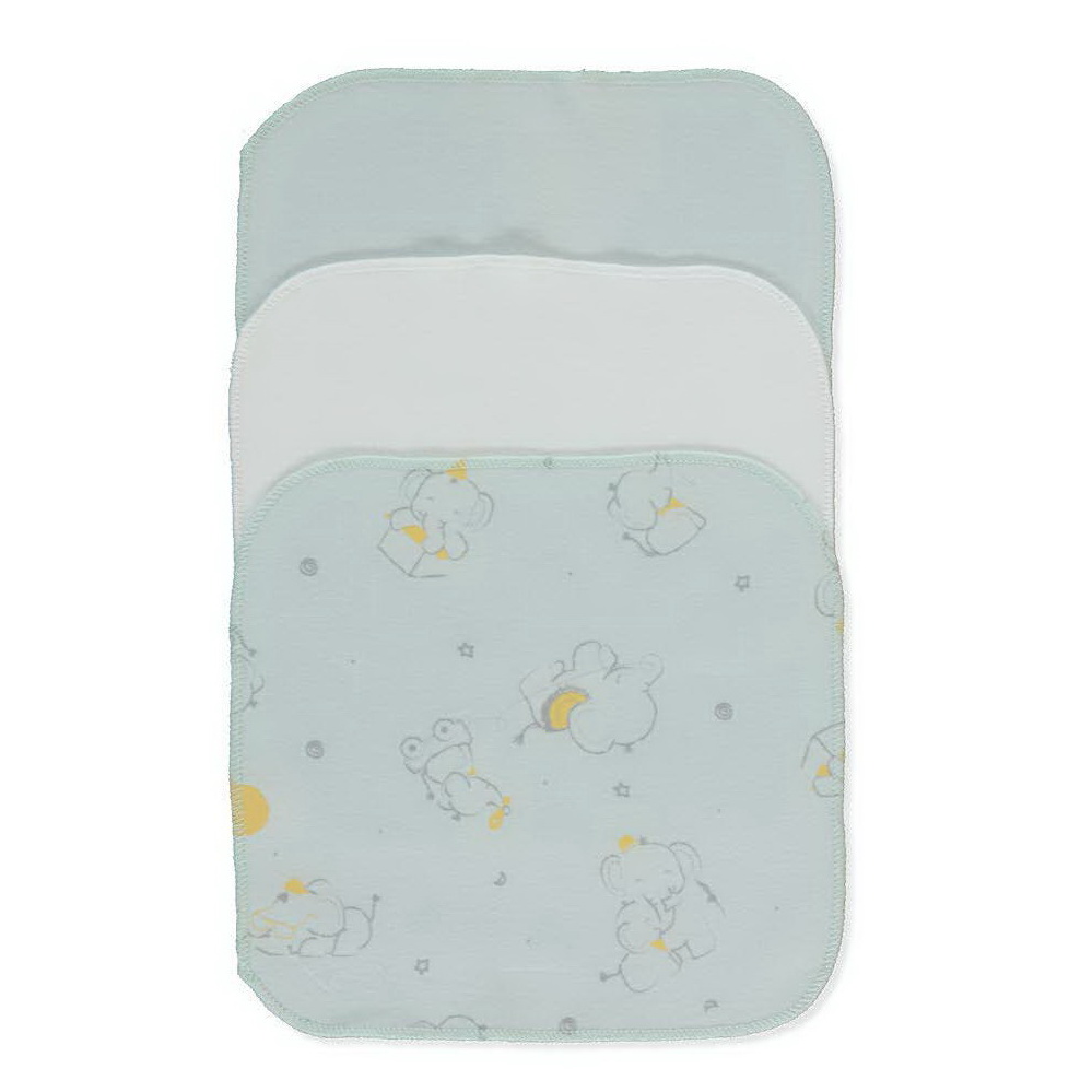 Набор из трёх мягких носовых платков для малышей: два однотонных и один с милым принтом слоников. Выполнены из нежной ткани, приятной к коже, — подойдут как для повседневного использования, так и в качестве стильного аксессуара.