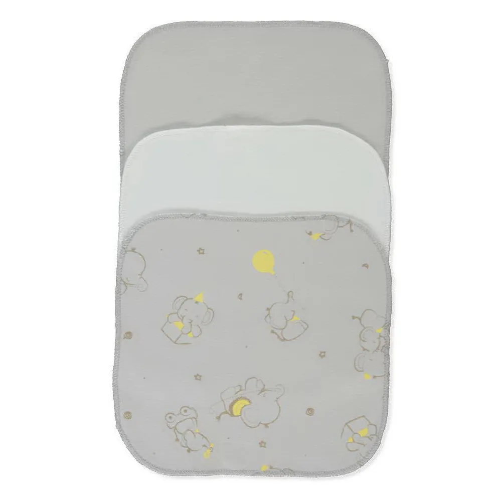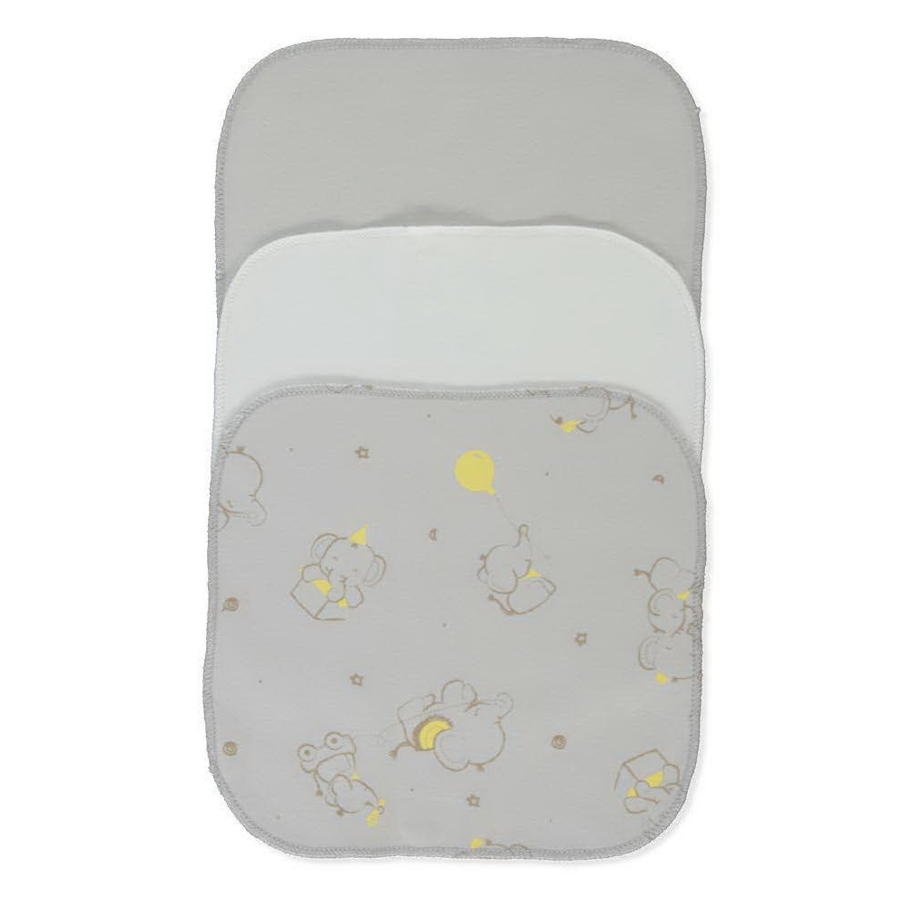 Набор из трёх мягких носовых платков для малышей: два однотонных и один с милым принтом слоников. Выполнены из нежной ткани, приятной к коже, — подойдут как для повседневного использования, так и в качестве стильного аксессуара.
