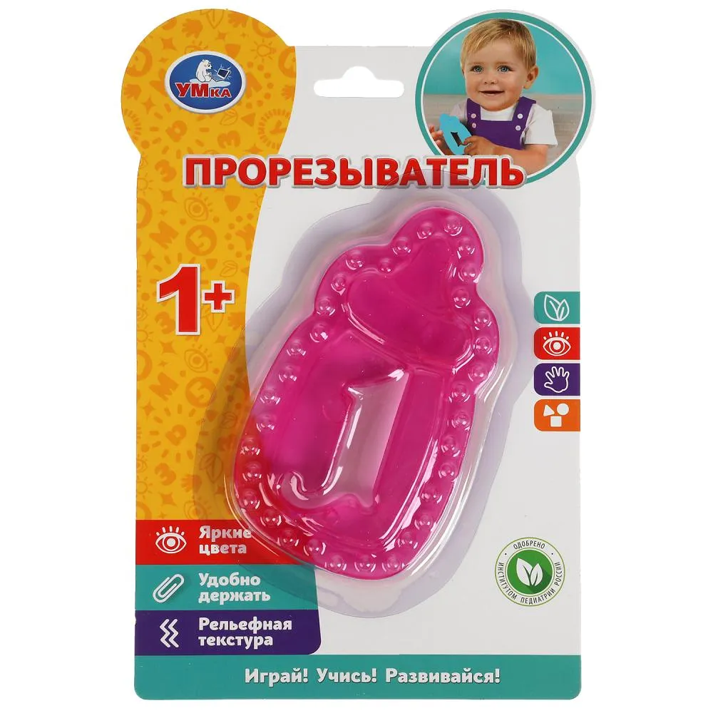 | Прорезыватель «Бутылочка» ТМ «УМка» – полезный помощник для малыша в период появления первых зубов. Яркая игрушка выполнена в форме бутылочки, имеет рельефную поверхность и удобную для захвата форму, благодаря чему ребёнку легко держать её в руках. Основная функция прорезывателя – мягкий массаж дёсен, который улучшает кровообращение, способствует формированию правильного прикуса и снимает неприятные ощущения при прорезывании зубов. |