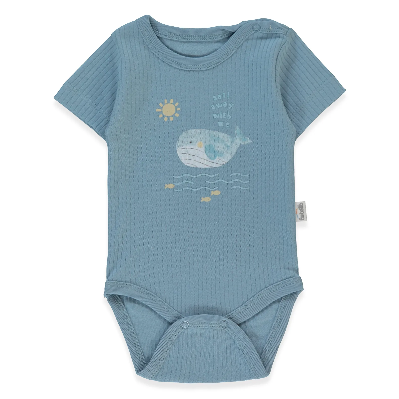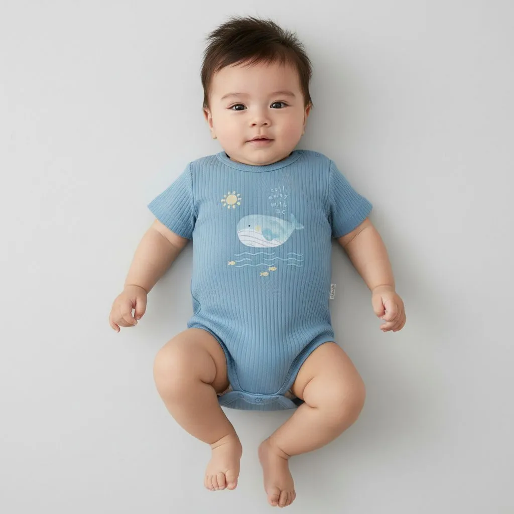 Нежный принт с китом добавляет аккуратный и милый акцент. Классический круглый вырез обеспечивает удобную посадку, а кнопки внизу позволяют быстро и легко сменить подгузник.