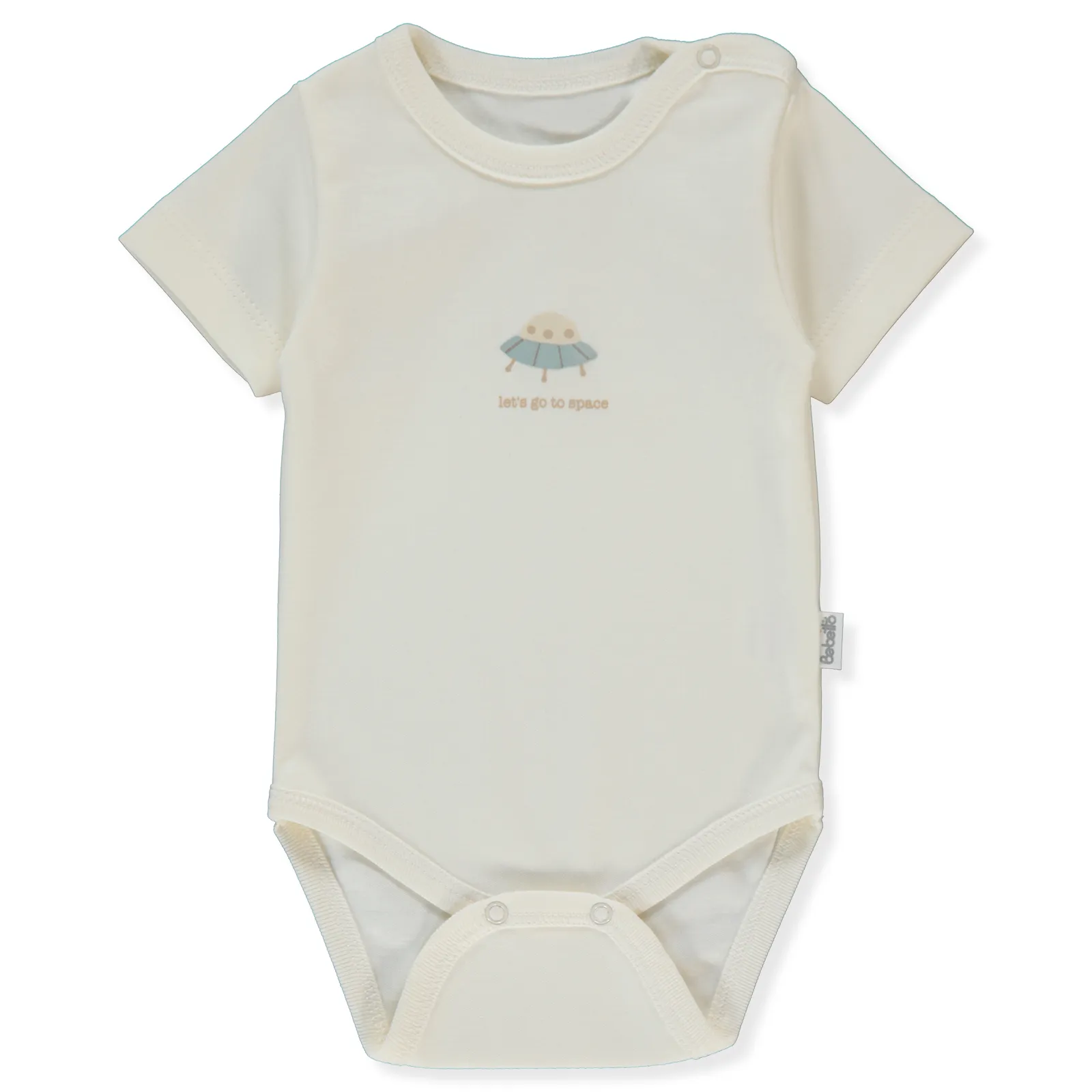Боди с короткими рукавами для новорождённого — удобная и аккуратная модель для повседневного использования. Подходит для дома, сна и прогулок.