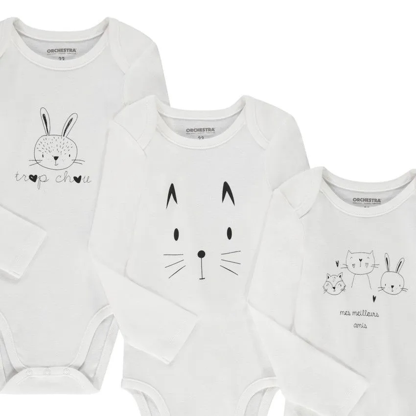 Этот набор из трех боди с длинным рукавом для малышей от Orchestra — идеальное решение для комфортной и теплой носки вашего ребенка. Каждый боди выполнен из мягкого и дышащего материала, нежно прилегающего к коже. Удобные застежки на кнопках позволяют легко менять одежду и подгузники. Набор представлен в разнообразных дизайнах и нежных цветах, что делает его отличным выбором как для повседневной носки, так и в качестве подарка для новорожденного.