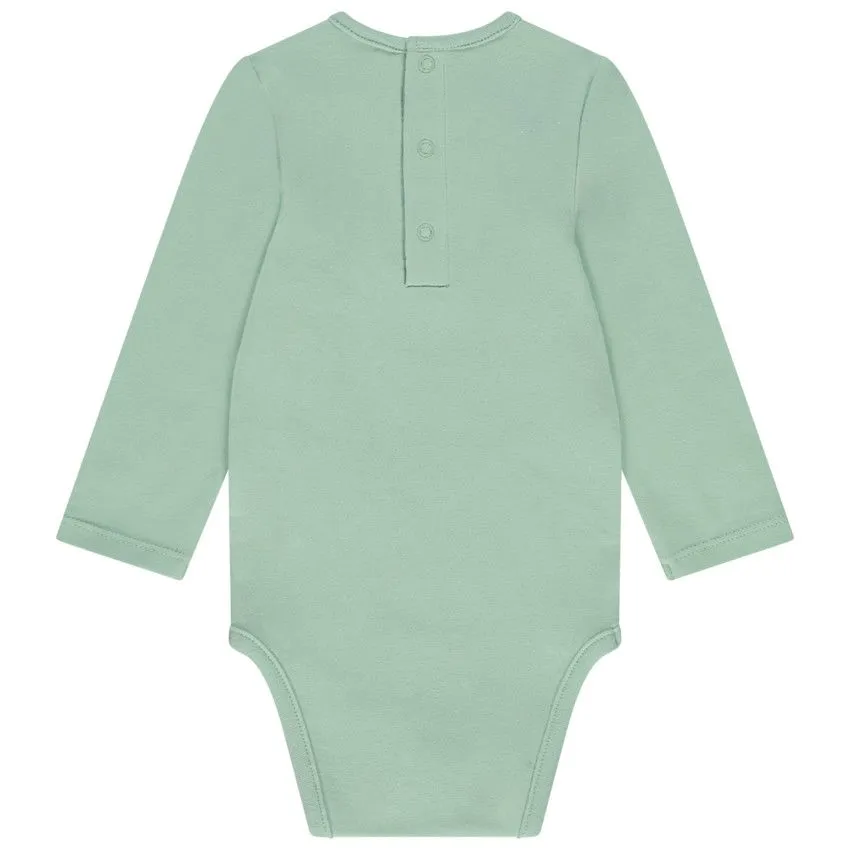 Набор из 3 трикотажных боди с длинными рукавами — незаменимый элемент гардероба для вашего малыша.  Круглый вырез горловины и застежка на кнопки в верхней части спины облегчают процесс одевания, а застежка на промежности обеспечивает комфорт и легкость при смене подгузника.