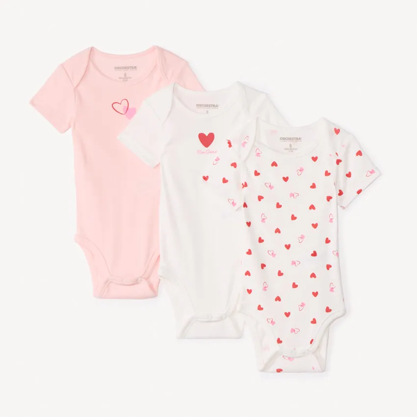 Набор из 3 боди с короткими рукавами для малышки с милым рисунком в виде сердечек — очаровательный и практичный выбор для повседневного гардероба. Яркий принт придаёт боди нежный и уютный вид, делая их отличным вариантом для дома и прогулок.