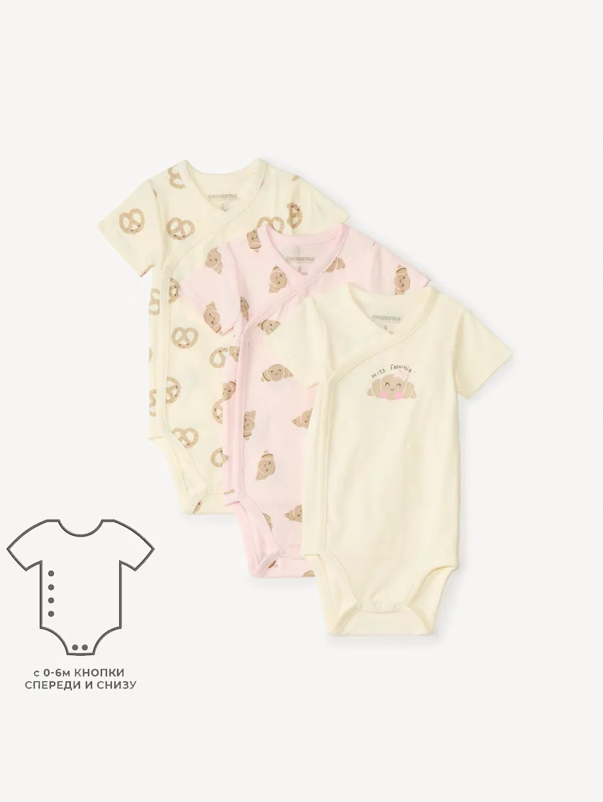 Модели продуманы с учетом возраста ребенка: для новорожденных и малышей до 6 месяцев предусмотрена удобная застежка на кнопках спереди (перекрещивающийся вырез), что позволяет легко переодевать малыша. Для детей от 9 до 36 месяцев — классический вариант с круглым вырезом. Все боди оснащены застежкой на кнопках в области промежности для быстрого и удобного переодевания.