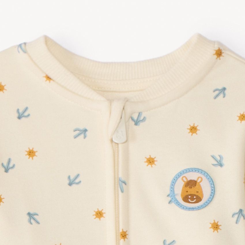 В комплект входит тёплый кардиган из флиса с застёжкой по всей длине, который хорошо сохраняет тепло и легко надевается. Боди с длинным рукавом оснащено застёжкой снизу, что делает переодевание и смену подгузника быстрыми и удобными. Брючки на эластичной резинке с манжетами обеспечивают комфортную посадку и не сковывают движений малыша.