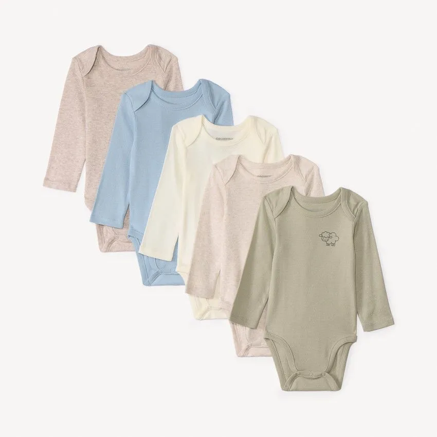 Практичный и удобный набор из пяти боди с длинным рукавом создан для повседневного гардероба малыша. Модели подходят для дома, сна и прогулок, обеспечивая комфорт и аккуратный внешний вид в течение всего дня.