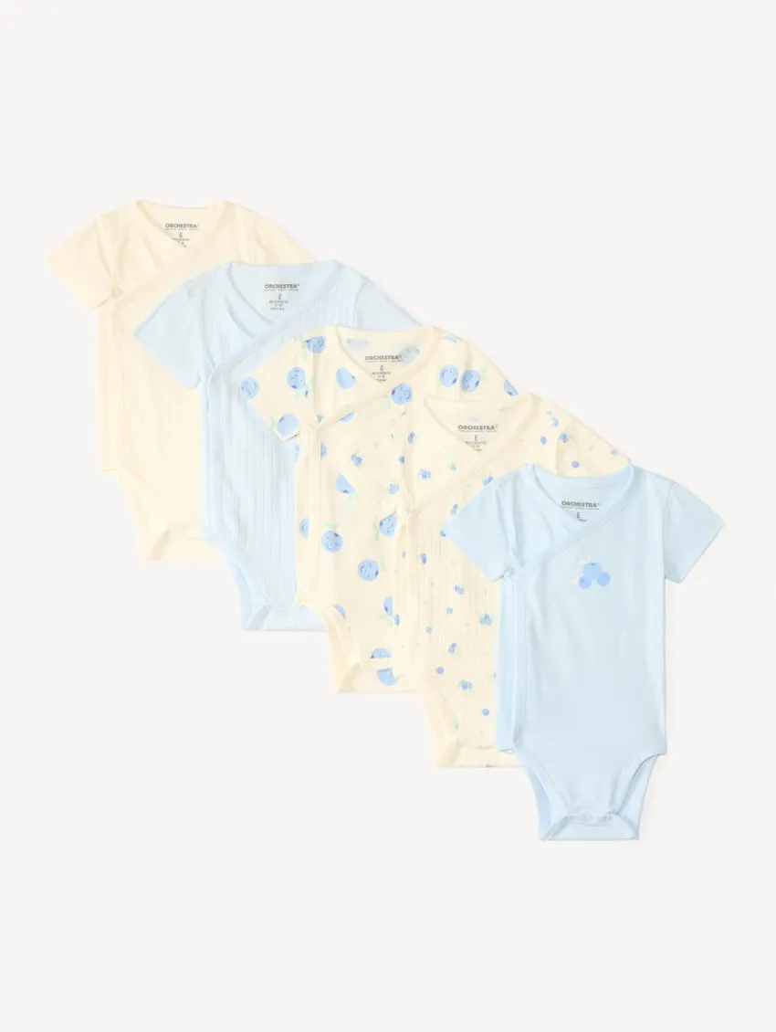 Набор из 5 боди с коротким рукавом для малышки — удобный и практичный вариант для ежедневного гардероба ребёнка. Модели выполнены из мягкого трикотажа (95% хлопок, 5% эластан), который хорошо пропускает воздух, приятно прилегает к коже и обеспечивает комфорт в течение всего дня.