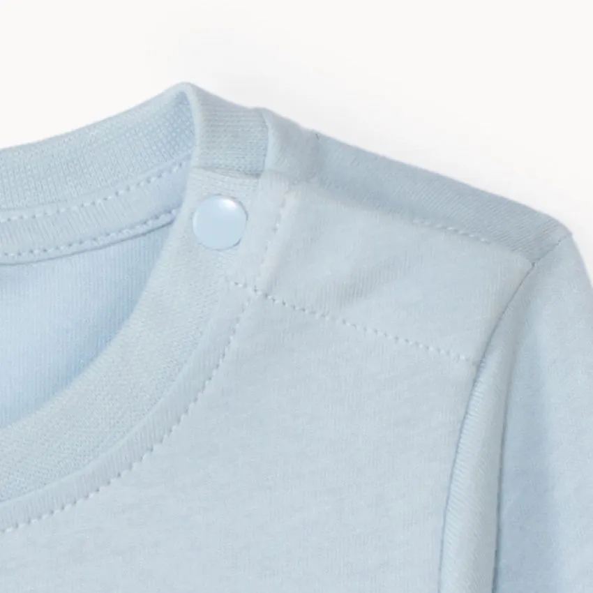 Застёжка на кнопке на плече облегчает надевание и снятие футболки, обеспечивая удобство в повседневной носке. Подойдёт для дома, прогулок и детского сада.