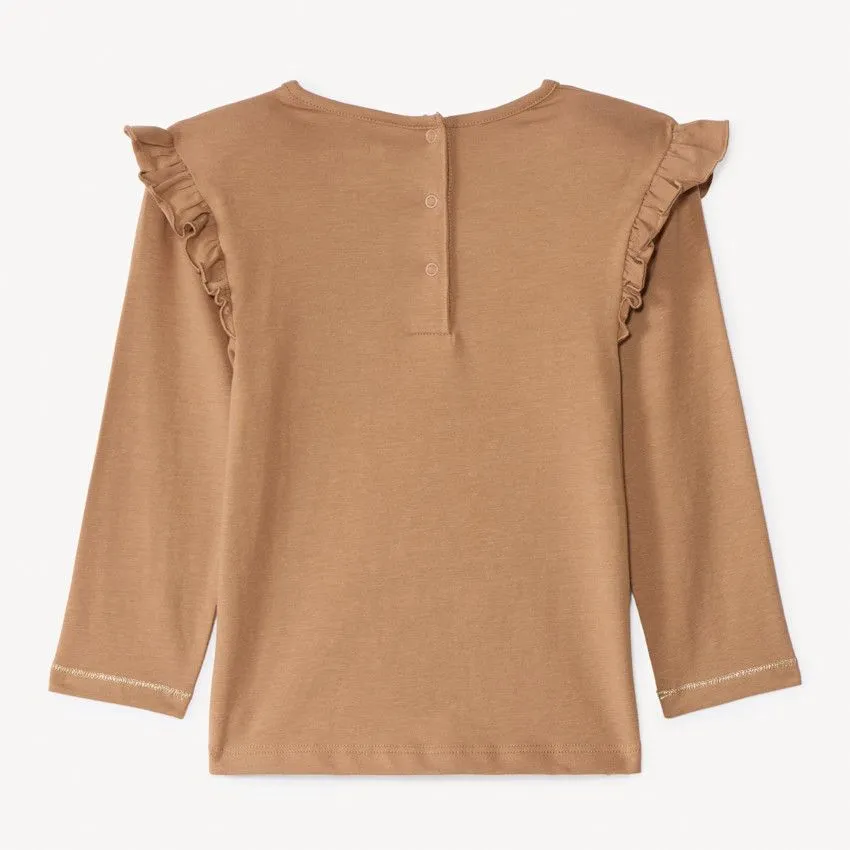 Футболка с длинными рукавами для девочки с вышитой надписью — нежная и удобная модель на каждый день.
