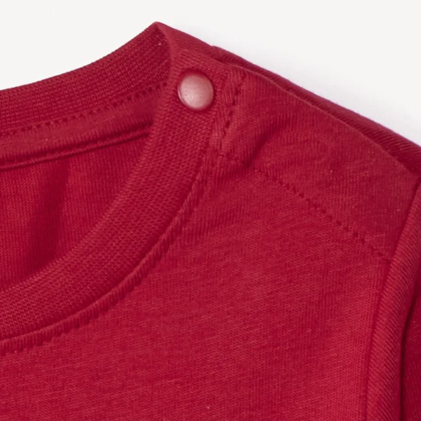 На плече расположена застёжка-кнопка, облегчающая переодевание малыша.