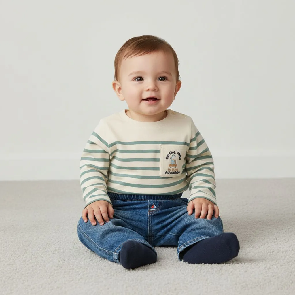 Футболка легко сочетается с брюками, шортами и комбинезонами, становясь практичным решением для повседневных образов малыша.