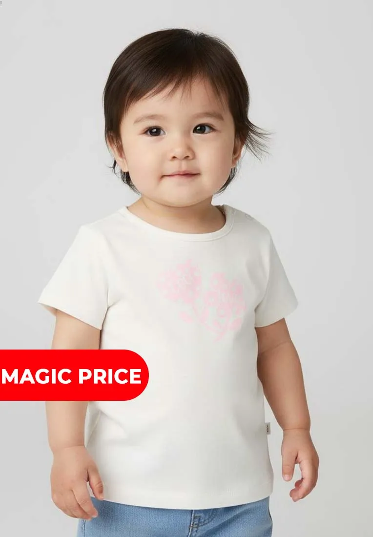 Короткие рукава и мягкий трикотаж делают футболку комфортной для активного дня, прогулок и игр. Модель легко сочетается с джинсами, шортами или юбками, создавая простой и аккуратный образ.