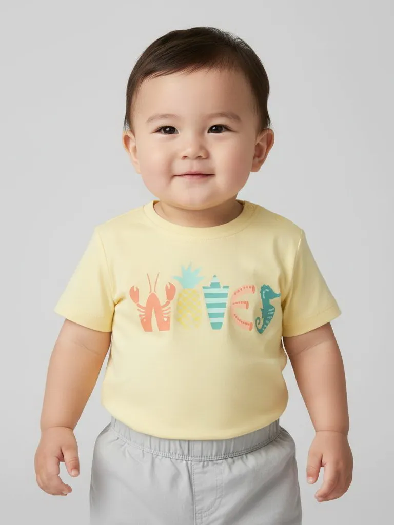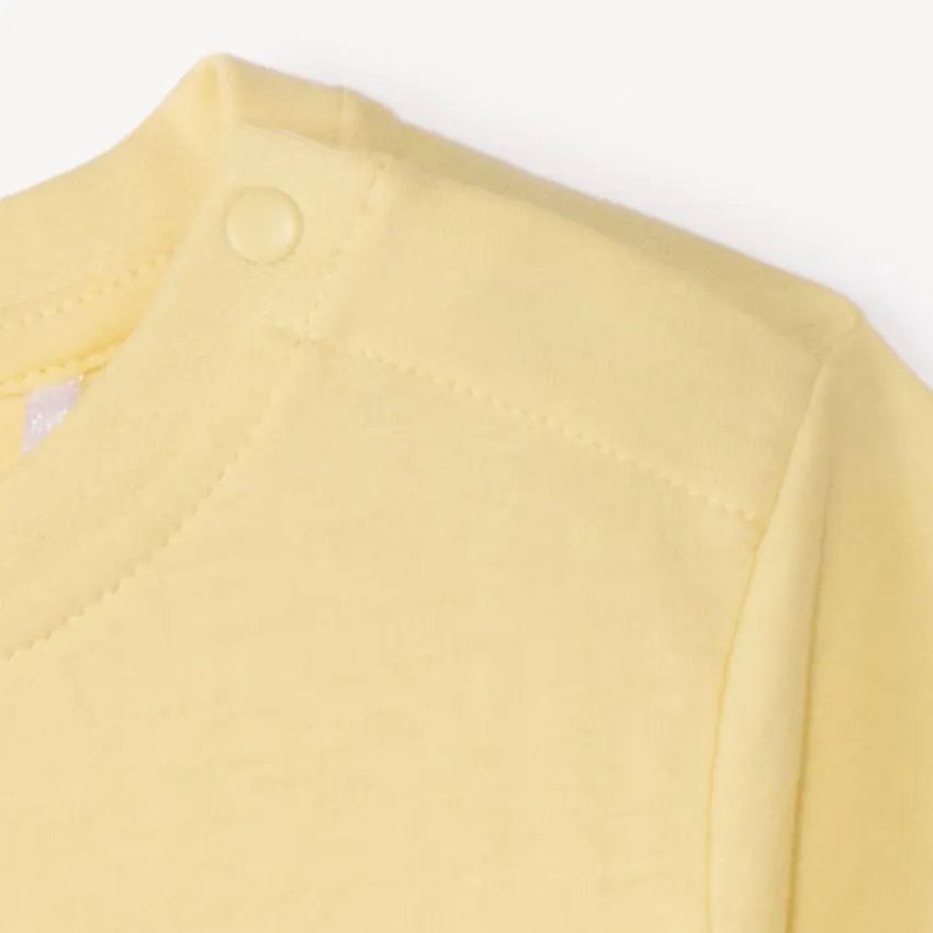 Яркая футболка для малыша выполнена из мягкого хлопкового трикотажа в нежном жёлтом оттенке. Ткань приятна к коже и обеспечивает комфорт в течение всего дня.