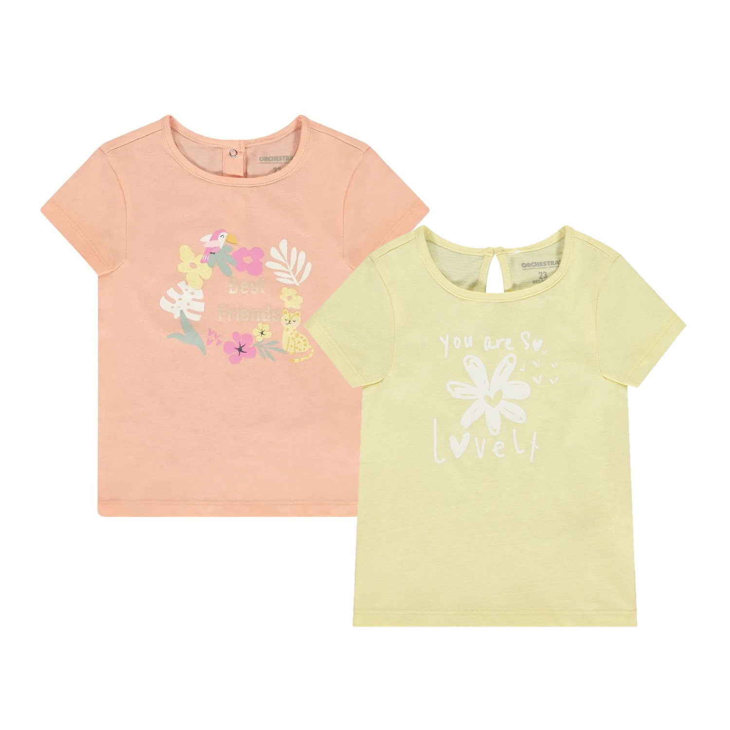 Комплект из 2 футболок для малышки с короткими рукавами — милое и удобное решение на каждый день.