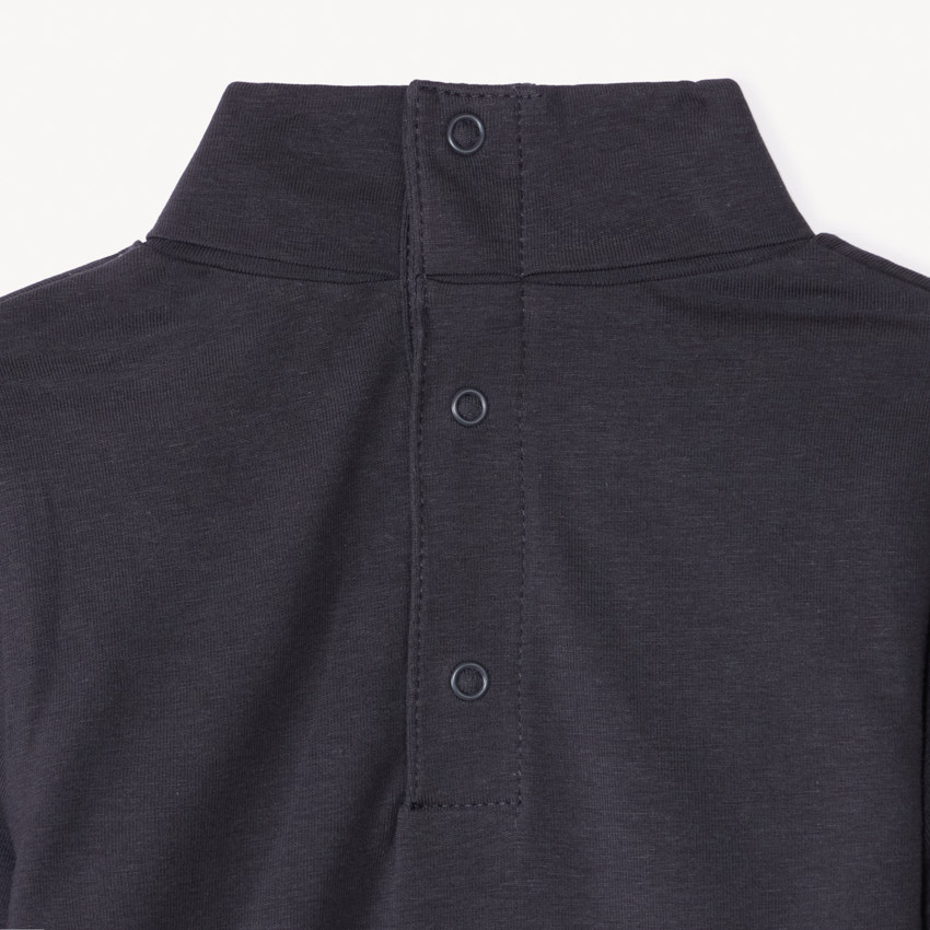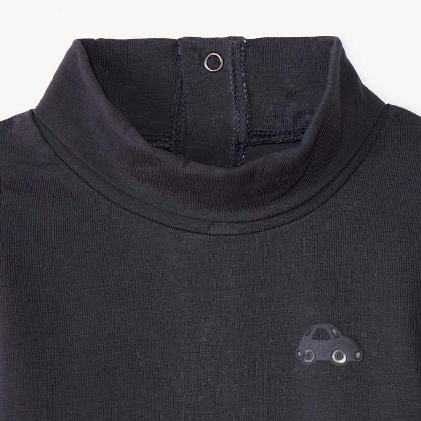 Набор из двух водолазок для малышей, выполненных из мягкого трикотажа. Модели однотонные, с высоким воротом и застёжкой на спинке для удобства переодевания. На груди, с левой стороны, расположен объёмный принт в тон ткани в виде машинки, добавляющий изделию милый акцент.