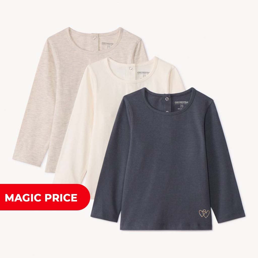 Удобный и практичный набор из трёх футболок создан для повседневного гардероба малышки. Модели подходят для дома, прогулок и активного дня, обеспечивая комфорт и аккуратный внешний вид.