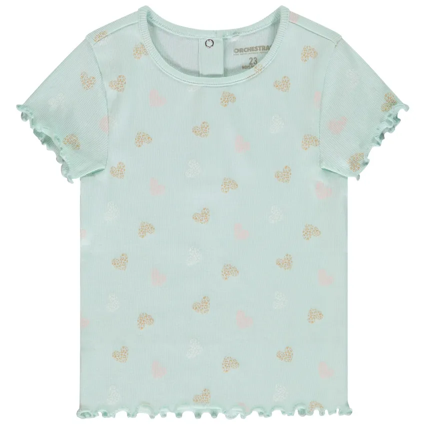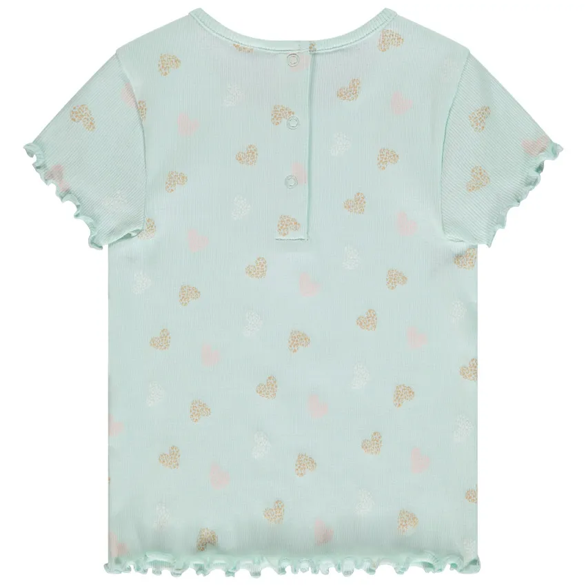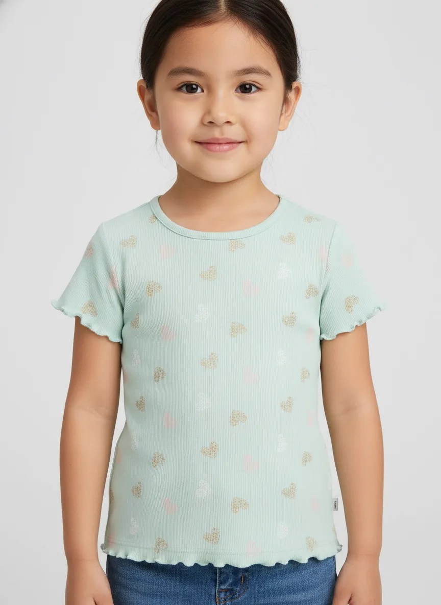 Изделие выполнено из мягкого трикотажа с ребристым эффектом (95% хлопок, 5% эластан), который приятно прилегает к телу, хорошо тянется и обеспечивает свободу движений. Натуральный состав подходит для нежной кожи ребенка и сохраняет комфорт в течение всего дня.