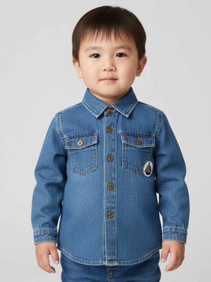 Модель с классическим воротником и застёжкой на пуговицы по всей длине изделия выглядит аккуратно и стильно. Отличный вариант для повседневных и более нарядных образов малыша.