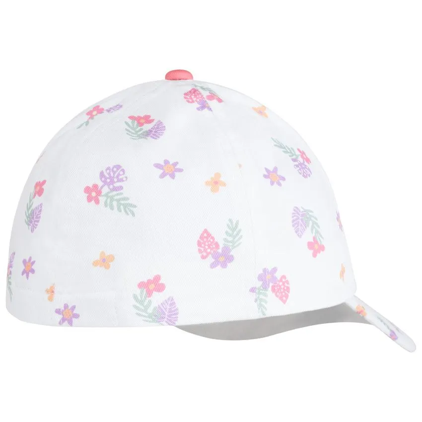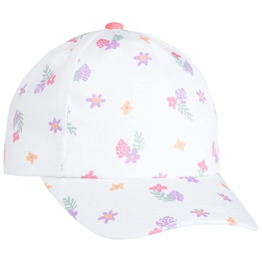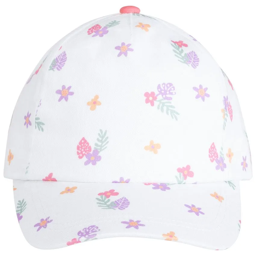 Стильная кепка. Верх украшен оригинальным мотивом в виде цветков — это добавляет образу игривости и блеска. Козырёк аккуратно прошит строчкой в тон основному цвету, что придаёт изделию завершённый и опрятный вид.