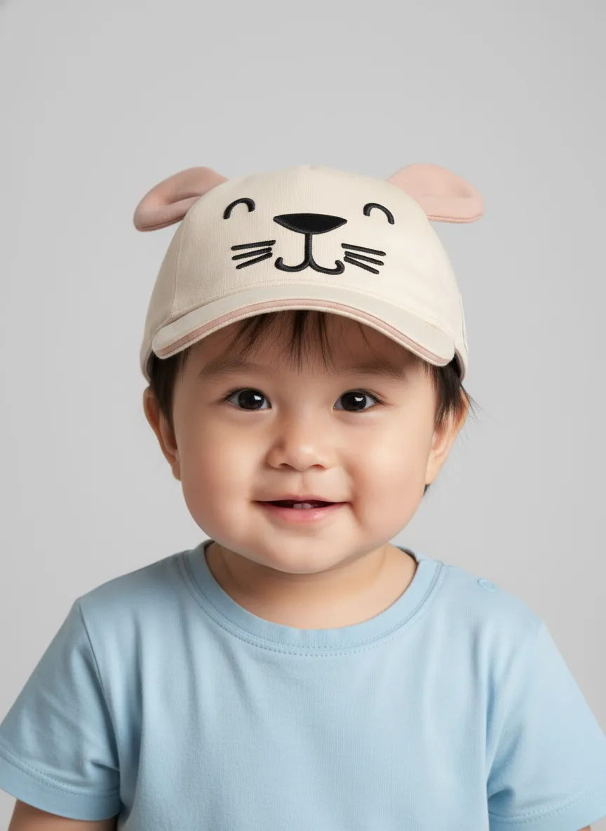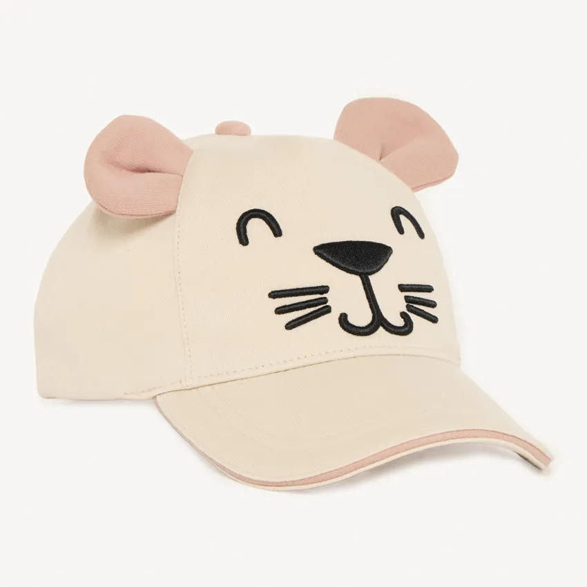 Милая кепка Orchestra для малыша — очаровательный аксессуар для прогулок в тёплую погоду. Модель украшена 3D-мордочкой на передней части, а ушки сверху придают кепке особенно забавный и привлекательный вид.