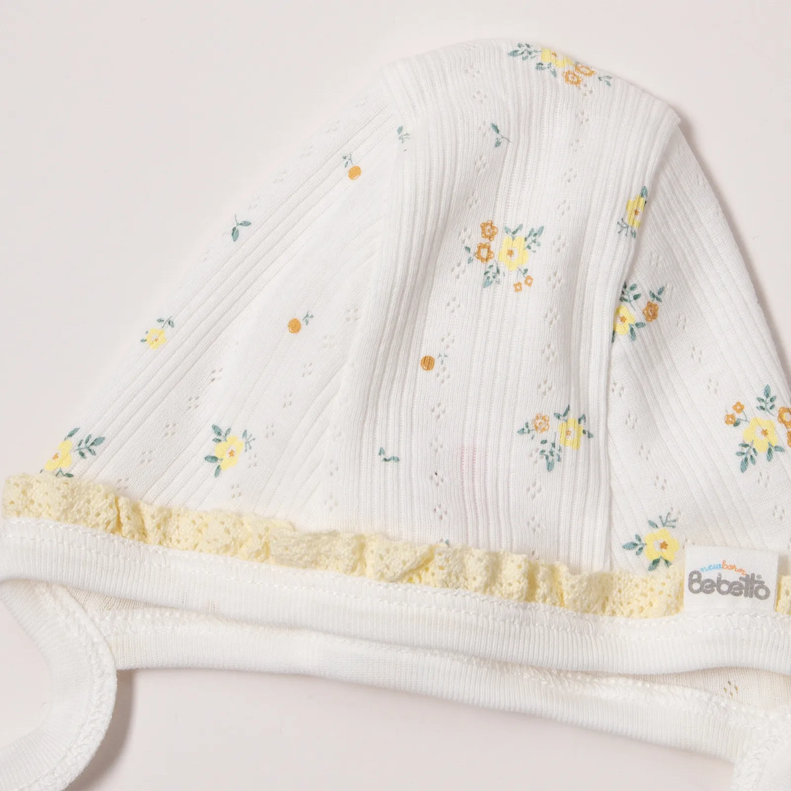 Чепчики выполнены из 100% хлопка — натурального, мягкого и дышащего материала, который бережно относится к чувствительной коже новорождённого и обеспечивает комфорт при ежедневном использовании. Ткань лёгкая, приятная на ощупь и хорошо пропускает воздух.