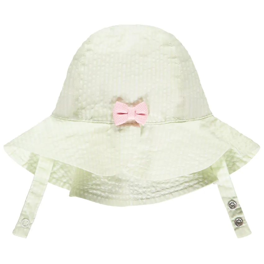 Панама для малышки от Orchestra — лёгкий и удобный головной убор для тёплой погоды. Модель выполнена из натурального 100% хлопка, который хорошо пропускает воздух и обеспечивает комфорт даже в жаркие дни. По центру панамы расположен аккуратный бант, придающий модели нежный и милый вид. Удобная застёжка на кнопках помогает надёжно фиксировать панаму и не даёт ей спадать во время прогулок. Отличный вариант для защиты от солнца и стильного летнего образа малышки.