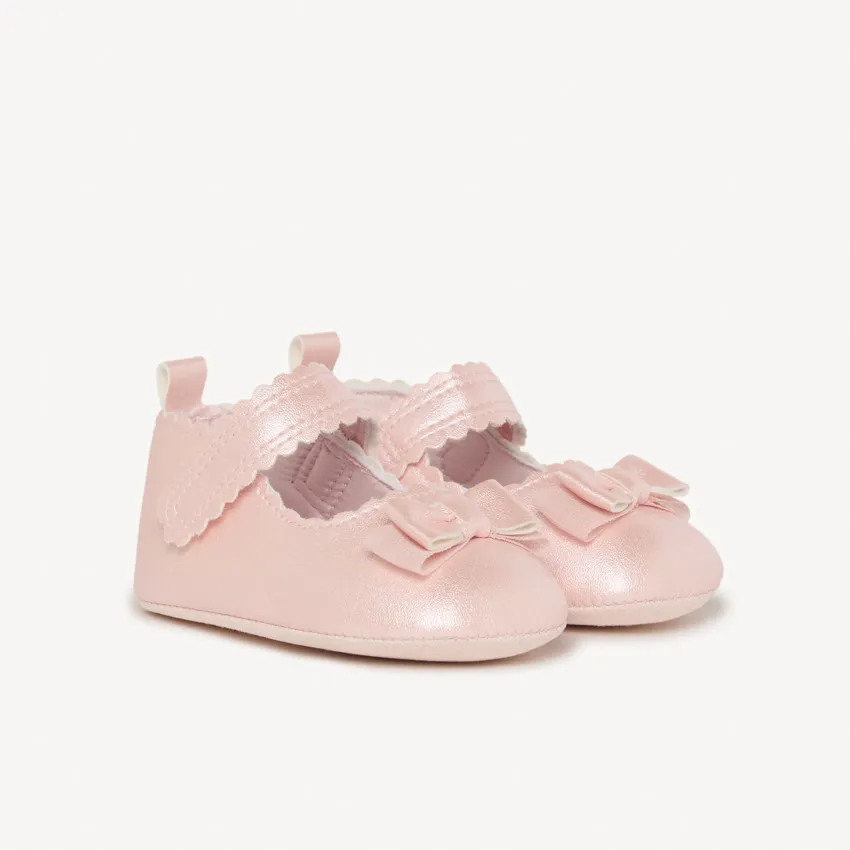 Очаровательные туфли для малышки с застёжкой на липучке и декоративным бантиком. Легко застёгиваются и хорошо фиксируются на ножке. Внешний материал: 95% полиуретан, 5% полиэстер. Подкладка и подошва: 100% полиэстер. Лёгкие, мягкие и отлично подойдут как для праздника, так и на каждый день