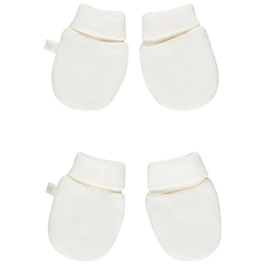 Этот набор из двух пар трикотажных царапок— безопасный и мягкий акссесуар для малыша. Они выполнены в нежном однотонном оттенке молочного цвета, создавая атмосферу уюта и нежности. Подвернутые манжеты из эластичной резинки обеспечивают комфортную посадку, не сжимая руку малыша. Стильная деталь — маленькая этикетка с принтом в виде сердечка, которая добавляет дополнительную изюминку. Варежки сделаны из 95% хлопка органического происхождения, что гарантирует мягкость и безопасность для чувствительной кожи, а 5% эластана обеспечивают удобство и эластичность. Такой комплект станет незаменимым для мамы, которая ценит комфорт и стиль в каждом моменте для своего малыша