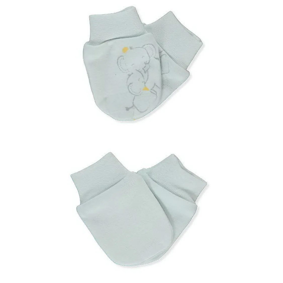 Набор из 2-х царапок для малышей. Одна пара — однотонная, вторая украшена милым принтом со слоником. Изготовлены из мягкого и дышащего материала, бережно защищают ручки малыша от случайных царапин.