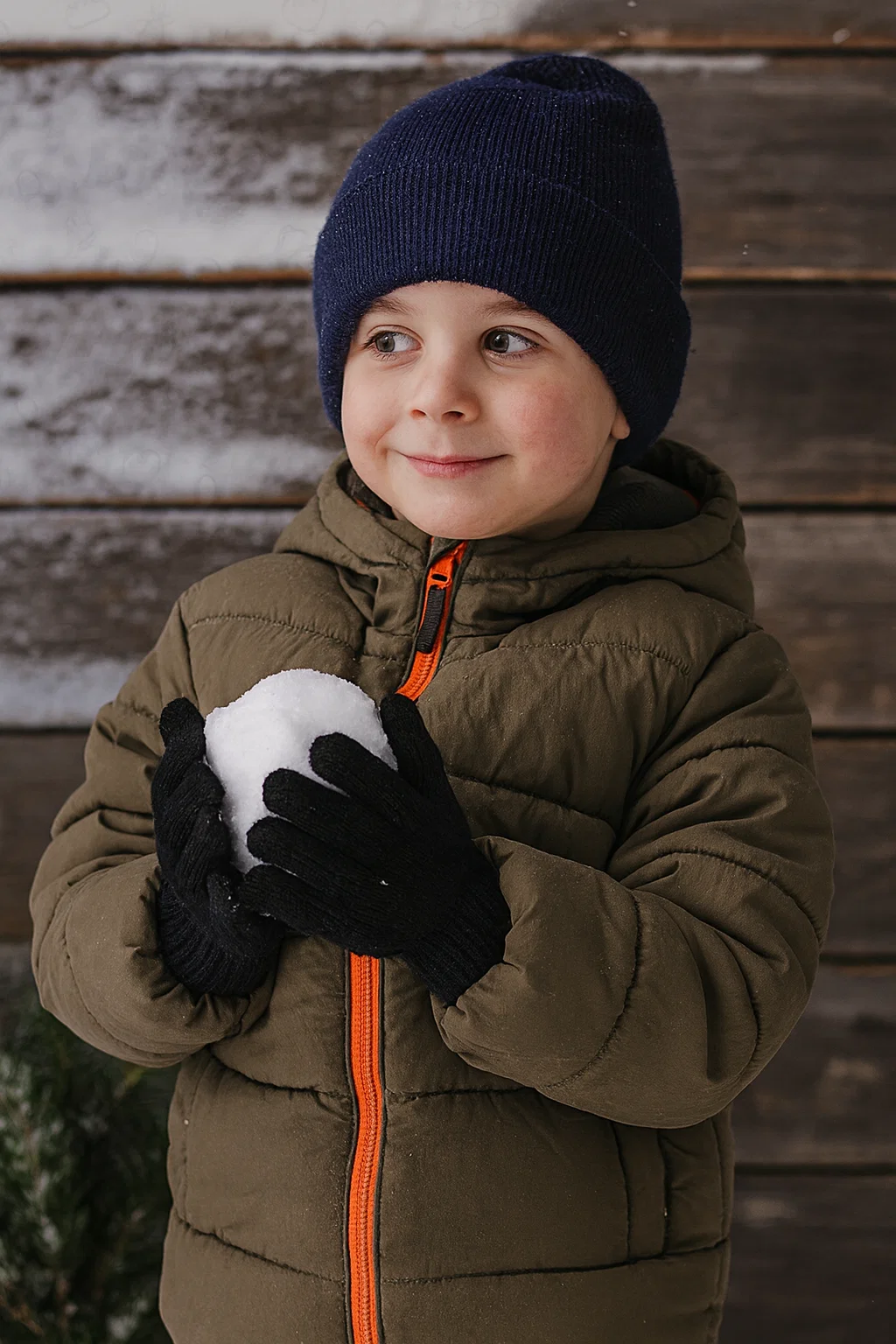 Детские перчатки — тёплый и практичный аксессуар для холодной погоды. В составе 30% шерсти и 70% акрила: шерсть отлично сохраняет тепло, а акрил придаёт мягкость, износостойкость и помогает перчаткам держать форму. Материал приятный к коже, не колется и комфортен в носке. Перчатки хорошо защищают руки от холода и подходят для ежедневных прогулок и активных игр на улице.