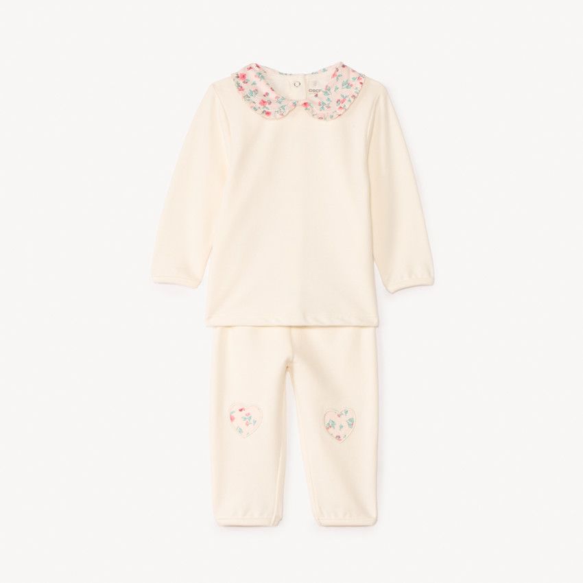 Комплект из 2 вещей Orchestra для малышки — стильный и комфортный вариант для повседневной носки. Футболка с длинным рукавом выполнена из мягкого французского махрового трикотажа (95% хлопок, 5% эластан), приятного к телу и хорошо сохраняющего форму. Нежный воротник с цветочным принтом добавляет образу очарования, а застёжка на спинке облегчает переодевание.
