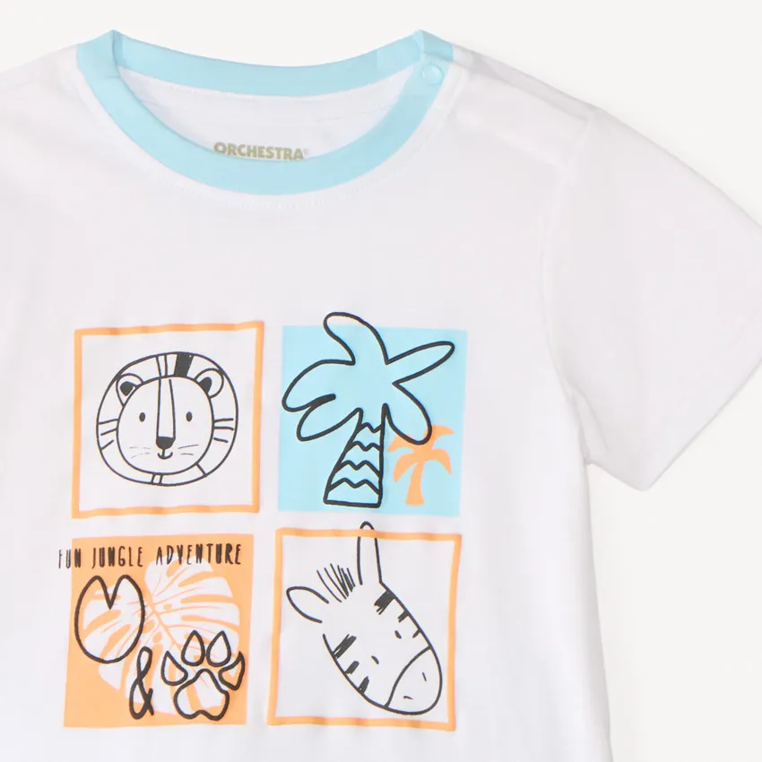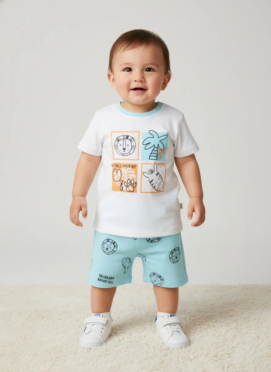 Комплект футболка + шорты Orchestra для малыша — удобный и лёгкий вариант для тёплой погоды и активных прогулок. Футболка украшена принтом по центру, а застёжка на левом плече облегчает переодевание малыша. Шорты дополнены эластичным поясом со шнурком, который обеспечивает комфортную посадку и свободу движений. Состав: 100% хлопок — мягкая, дышащая и приятная к коже ткань, идеально подходящая для чувствительной кожи малыша.