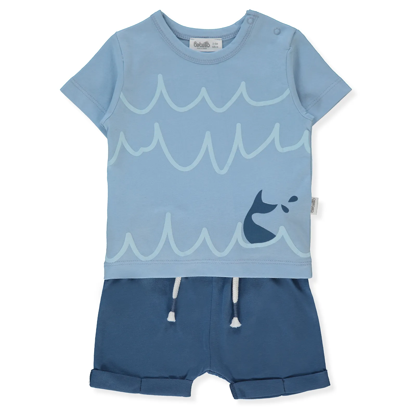 Набор из двух вещей для малыша — футболка с короткими рукавами и шорты, удобный вариант для тёплой погоды и активных дней. Изделия выполнены из мягкого трикотажа из 100% хлопка. Натуральная ткань хорошо пропускает воздух, приятна к телу и подходит для чувствительной кожи малыша. Комплект комфортно сидит и не сковывает движений. Футболка с аккуратным принтом в морской тематике добавляет образу игривый акцент. Кнопки на плече облегчают процесс переодевания. Шорты с эластичным поясом и шнурком мягко фиксируются на талии, не вызывая дискомфорта. Набор практичен в уходе, легко сочетается с другой одеждой и отлично подходит для дома, прогулок и отдыха. Отличный вариант для летнего гардероба малыша. |
