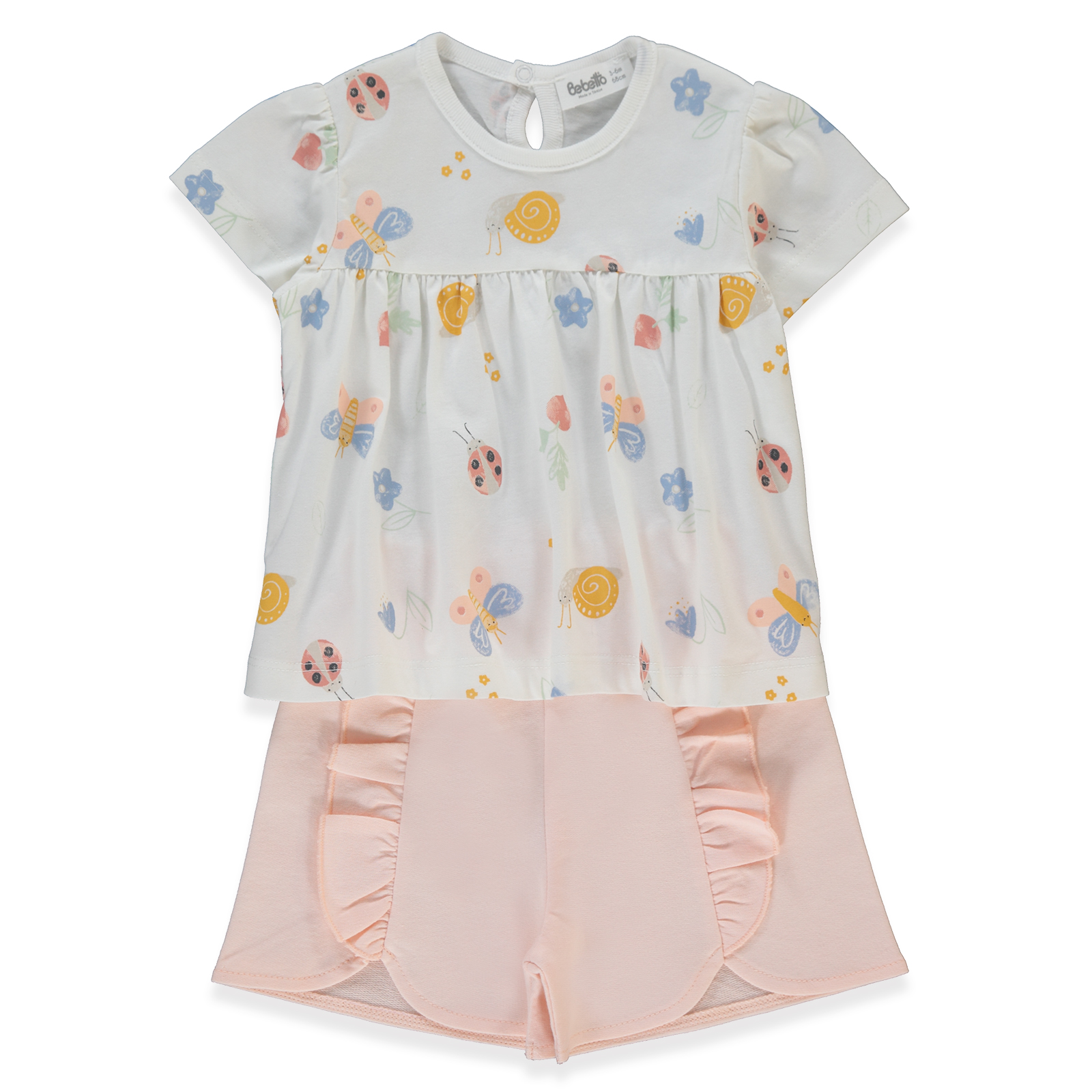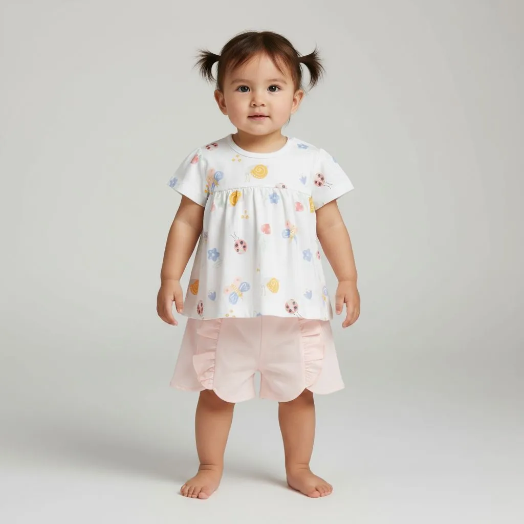 Набор из 2-х вещей для малышки (футболка с коротким рукавом и шорты) — удобный и нежный комплект для тёплых дней, прогулок и повседневного ношения.