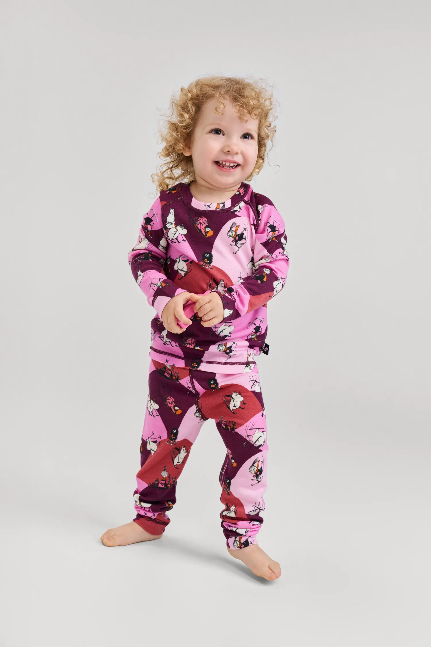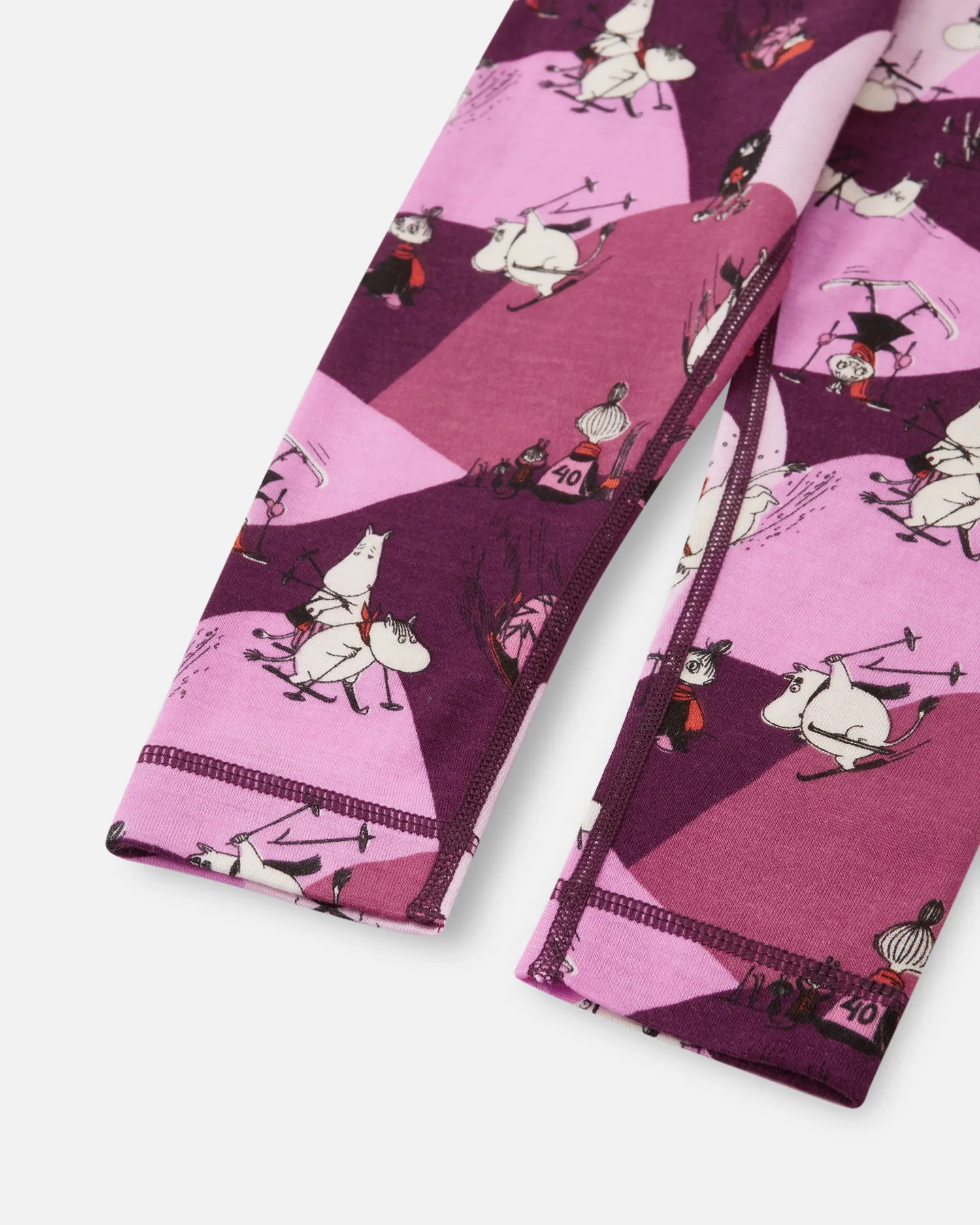 Мягкая изнаночная сторона из лиоцелла обладает превосходными впитывающими свойствами. Необычайно теплый верхний материал изготовлен из экологичной мериносовой шерсти. Леггинсы и лонгслив отлично защищают в морозную погоду, поддерживая комфортную температуру тела. Плоские швы этого комплекта Reima не натирают кожу и дарят непревзойденный комфорт. Эластичная талия не сковывает движений. Красивое и теплое детское термобелье с принтом Муми-тролли!