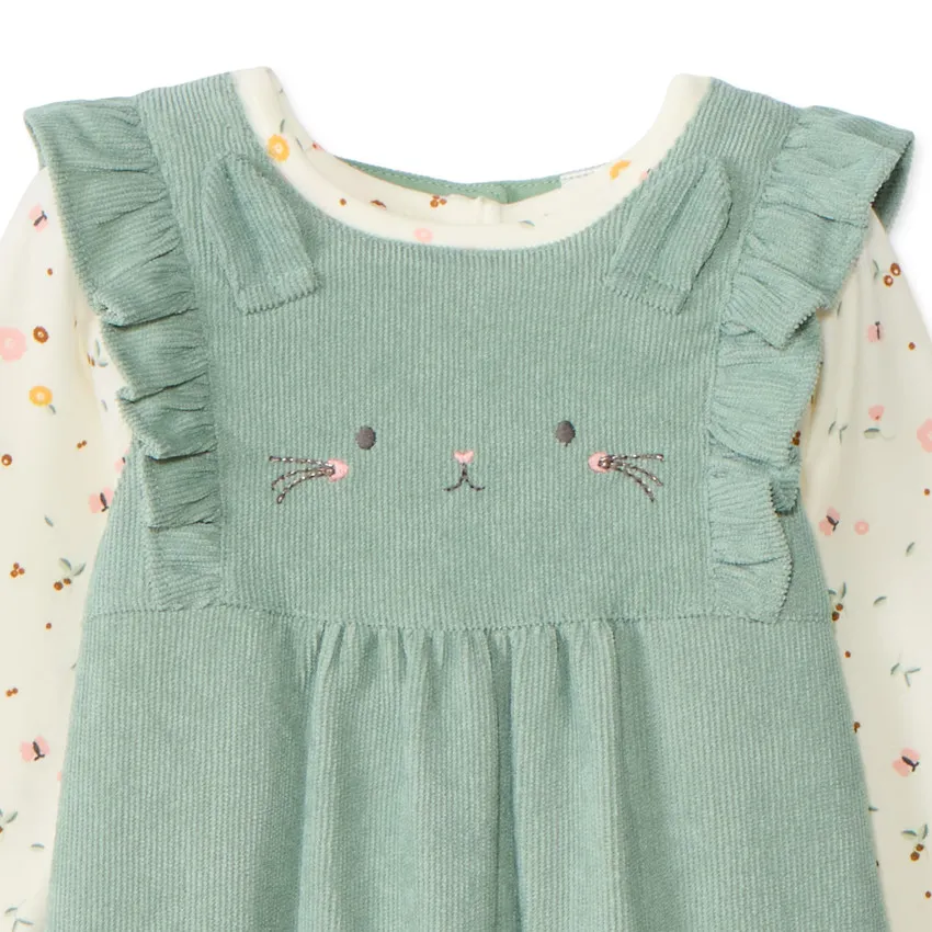 Практичные материалы и продуманные детали делают этот набор удобным вариантом для гардероба малышки.
