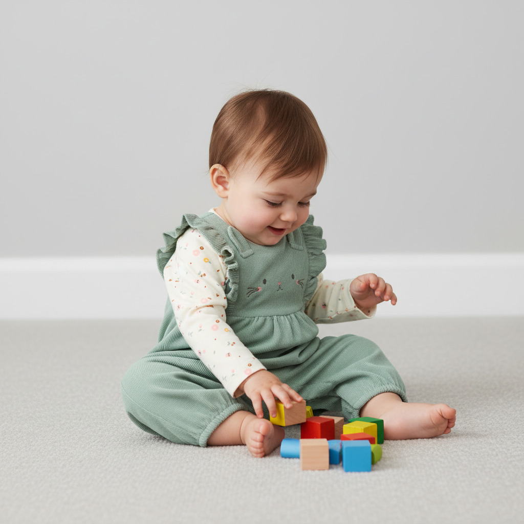 Практичные материалы и продуманные детали делают этот набор удобным вариантом для гардероба малышки.
