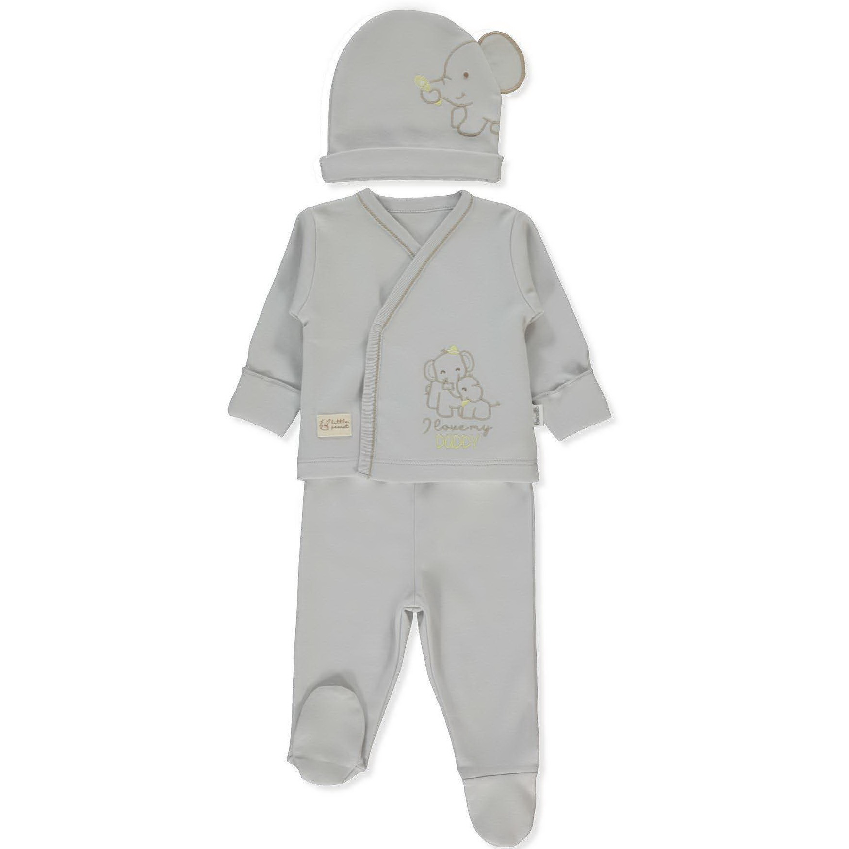 | Нежный комплект из 3-х предметов для новорождённых: распашонка с открытыми рукавами с милым принтом слоника с мамой, ползунки с закрытыми ножками и мягкая шапочка с изображением слоника. Изготовлен из приятного к телу хлопка — идеально для первых дней малыша. |