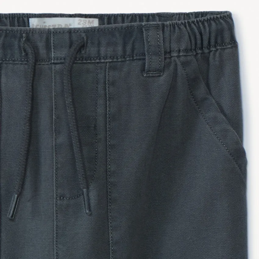 | Малышковые брюки из плотной однотонной ткани — удобная модель для повседневной носки. Эластичный пояс со шнурком, шлевки для ремня и имитация гульфика создают аккуратный образ. Спереди — накладные карманы, низ штанин с мягкими подворотами. Подходят для прогулок и активных игр. |