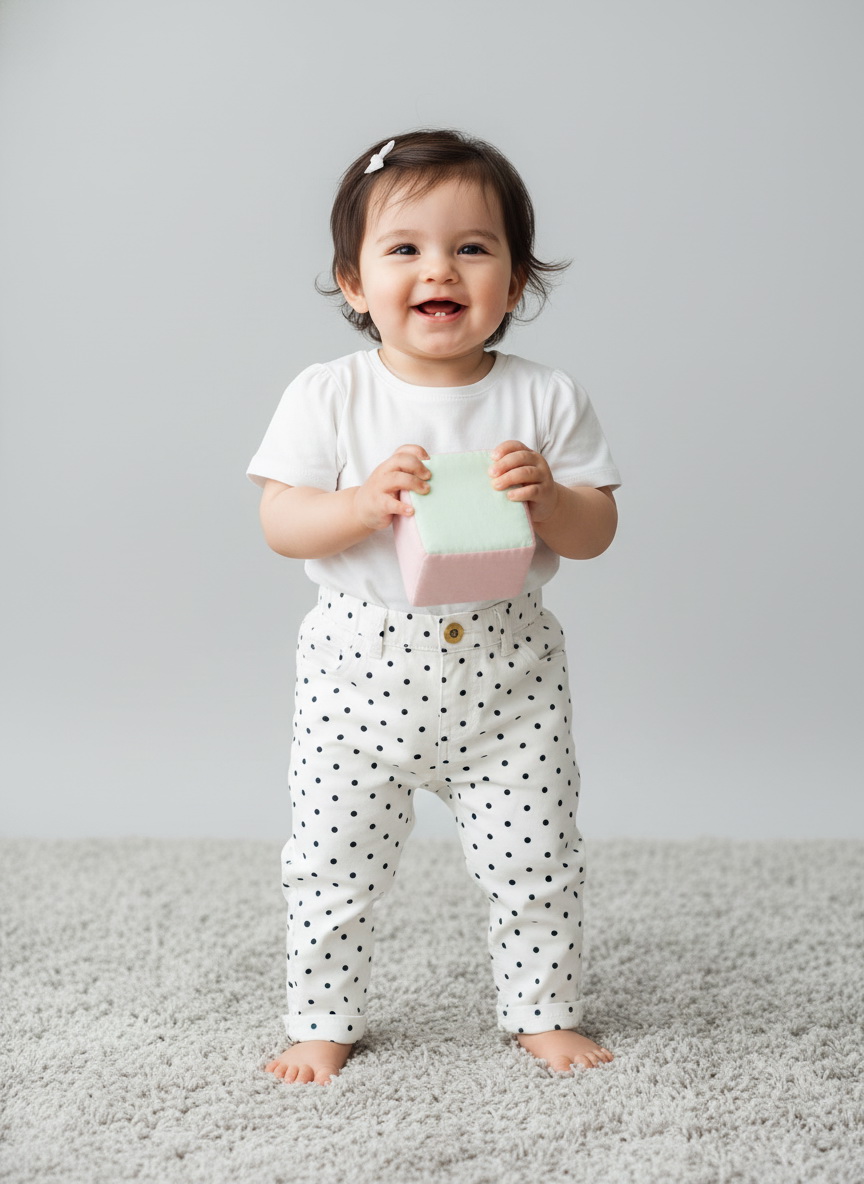 Пояс на эластичной резинке обеспечивает удобную посадку, а застёжка на кнопке делает процесс одевания быстрым и удобным. Лёгкие и практичные брюки отлично подойдут для повседневных прогулок и активного дня.
