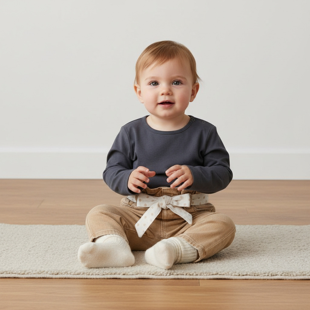 Модель дополнена поясом с лентой, который обеспечивает комфортную посадку и добавляет нежный декоративный акцент. Удобный крой не сковывает движений и подходит для активного малыша.