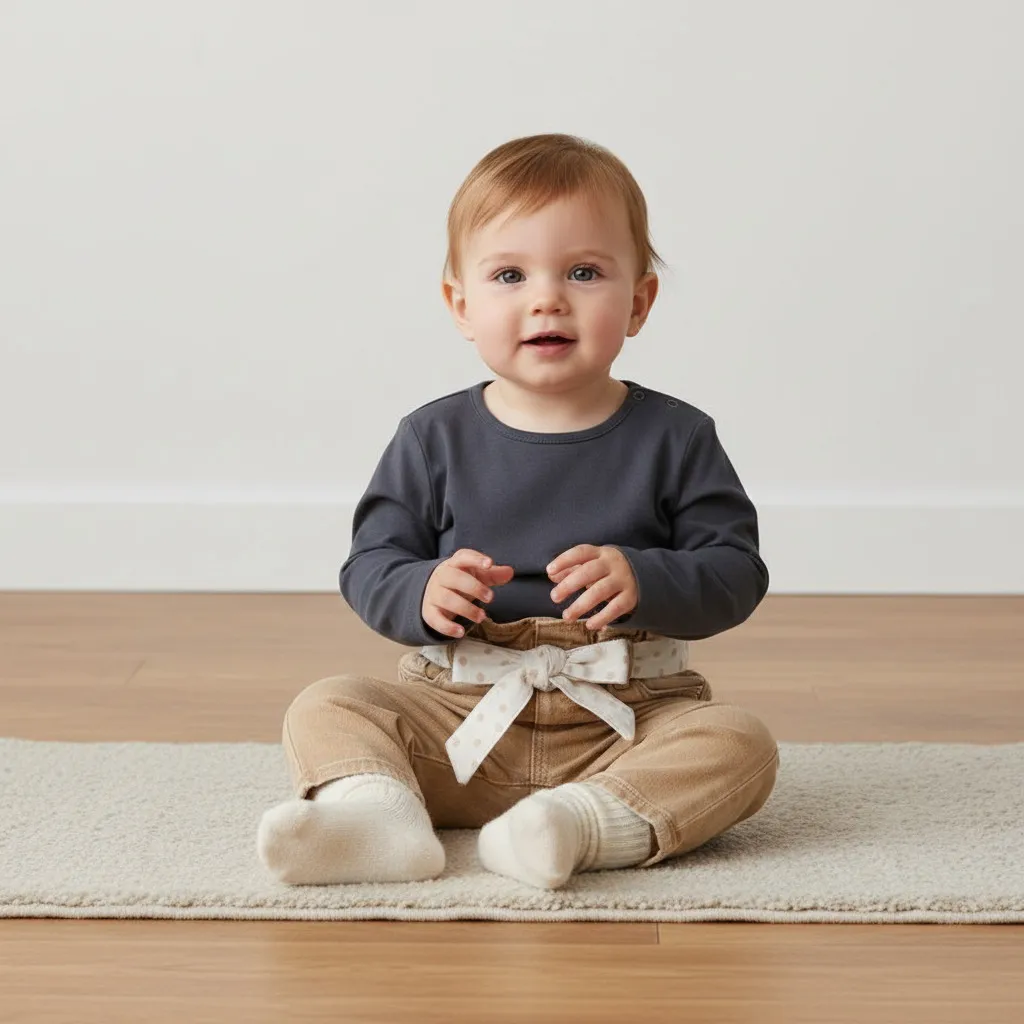 Модель дополнена поясом с лентой, который обеспечивает комфортную посадку и добавляет нежный декоративный акцент. Удобный крой не сковывает движений и подходит для активного малыша.