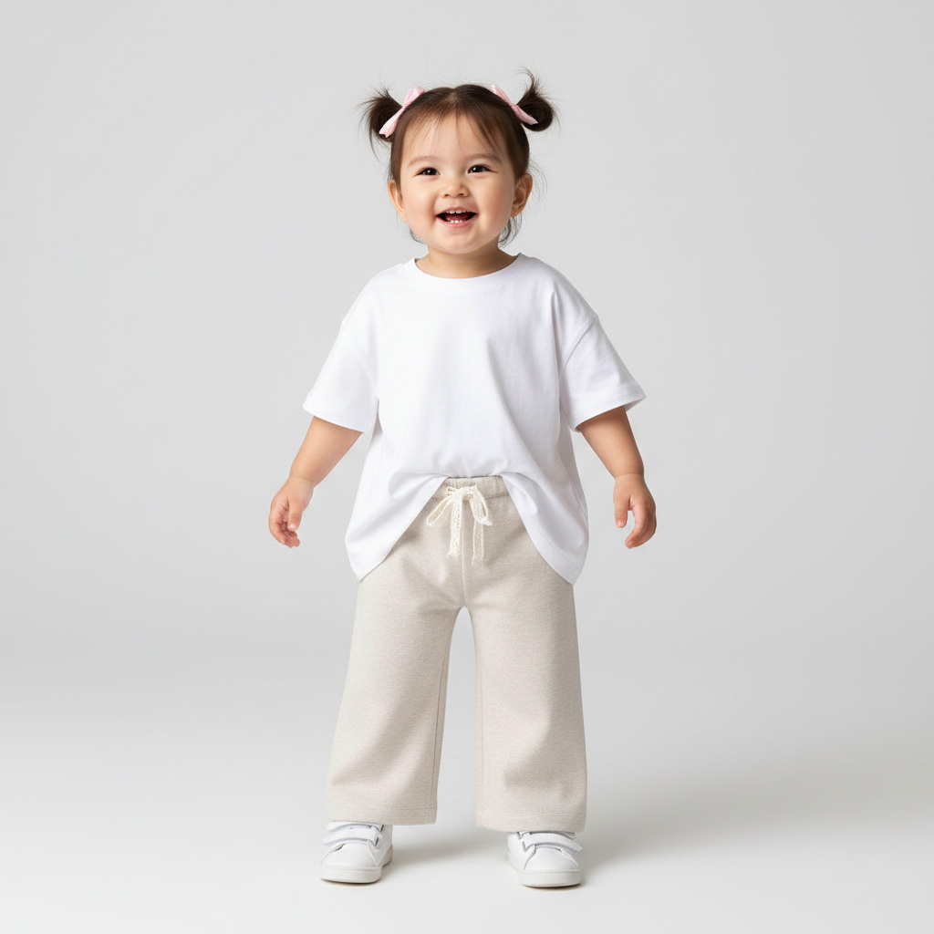 Широкие трикотажные брюки из мягкого футера с высокой посадкой для малышки. Эластичный пояс со шнурком из кружева удобно регулируется. Модель украшена тонким люрексом, придающим лёгкое сияние. Свободный крой не сковывает движений и обеспечивает комфорт.