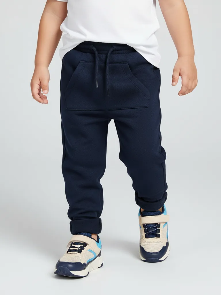 Брюки для малышей из мягкого плотного трикотажа Milano. Эластичный пояс с завязками обеспечивает комфортную посадку. Спереди большой карман-кенгуру, аккуратные подвороты делают модель стильной.