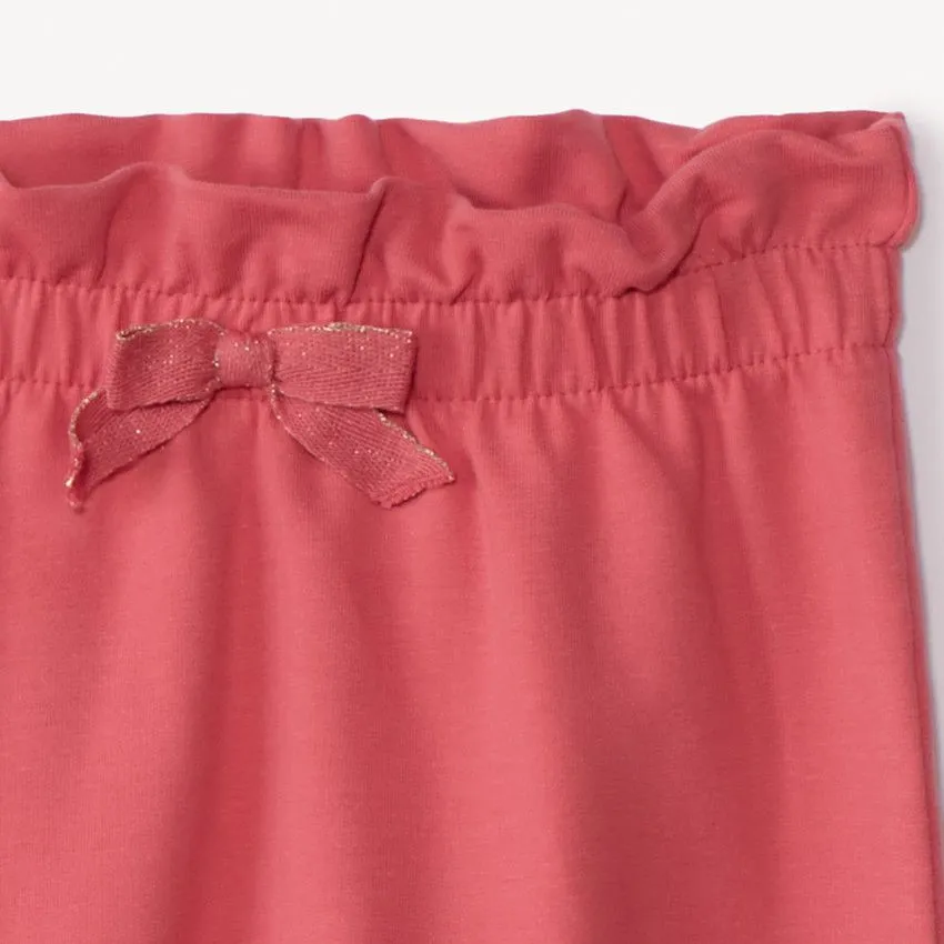 Модель украшена декоративным бантом спереди с добавлением золотого люрекса — милый акцент, который добавляет образу нежности и игривости.