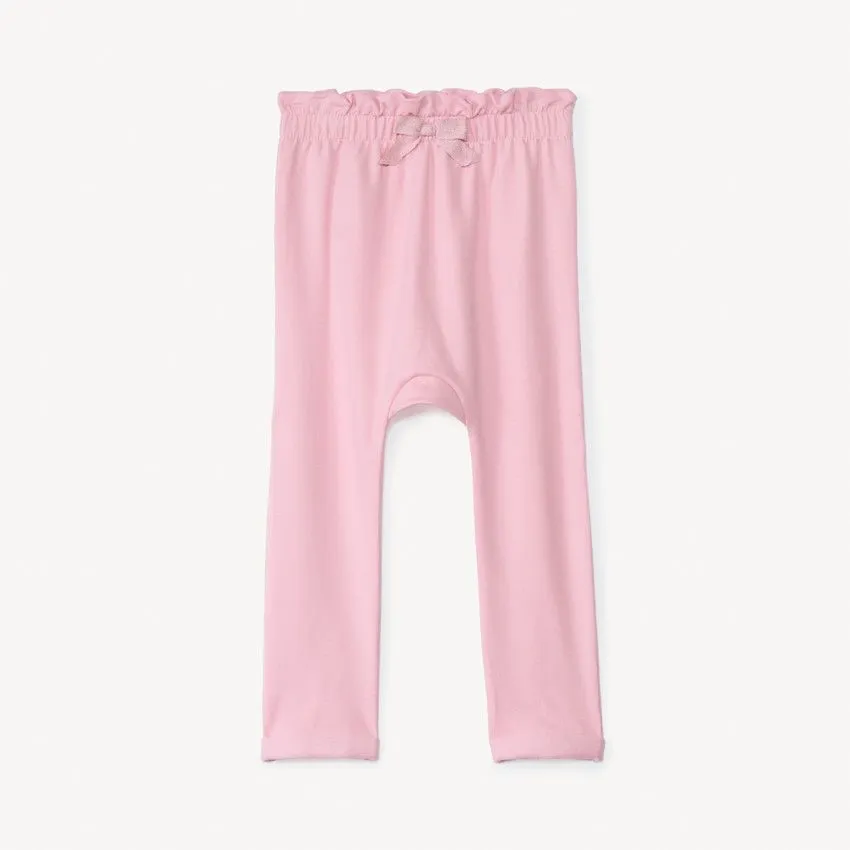 Пояс на эластичной резинке украшен милым бантиком, который добавляет образу очарования. Низ брючек с подворотом на ножках обеспечивает удобную посадку и аккуратный внешний вид. Идеальный вариант для прогулок, детского сада и домашнего уюта.