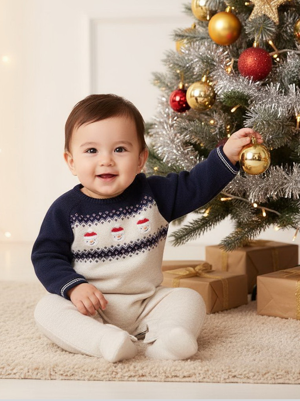 По центру — весёлый новогодний принт, который создаёт праздничное настроение и идеально подходит для зимних образов и семейных фото.